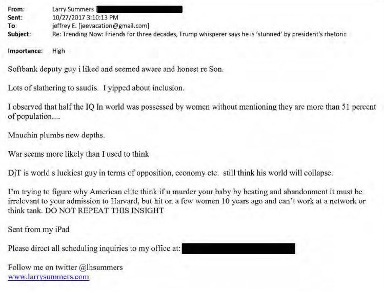 A hall-of-fame piece of shit. Now read my post from last year about why I repudiate the Larry Summers way of being an intellectual: