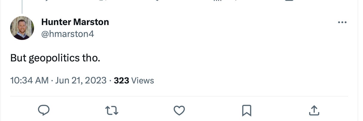 The idea that geopolitics—or specifically China—is the reason why we should fall all over ourselves courting Modi and selling him weapons confuses motivation with justification (wouldn’t be the first time—this is also a problem animating AUKUS).