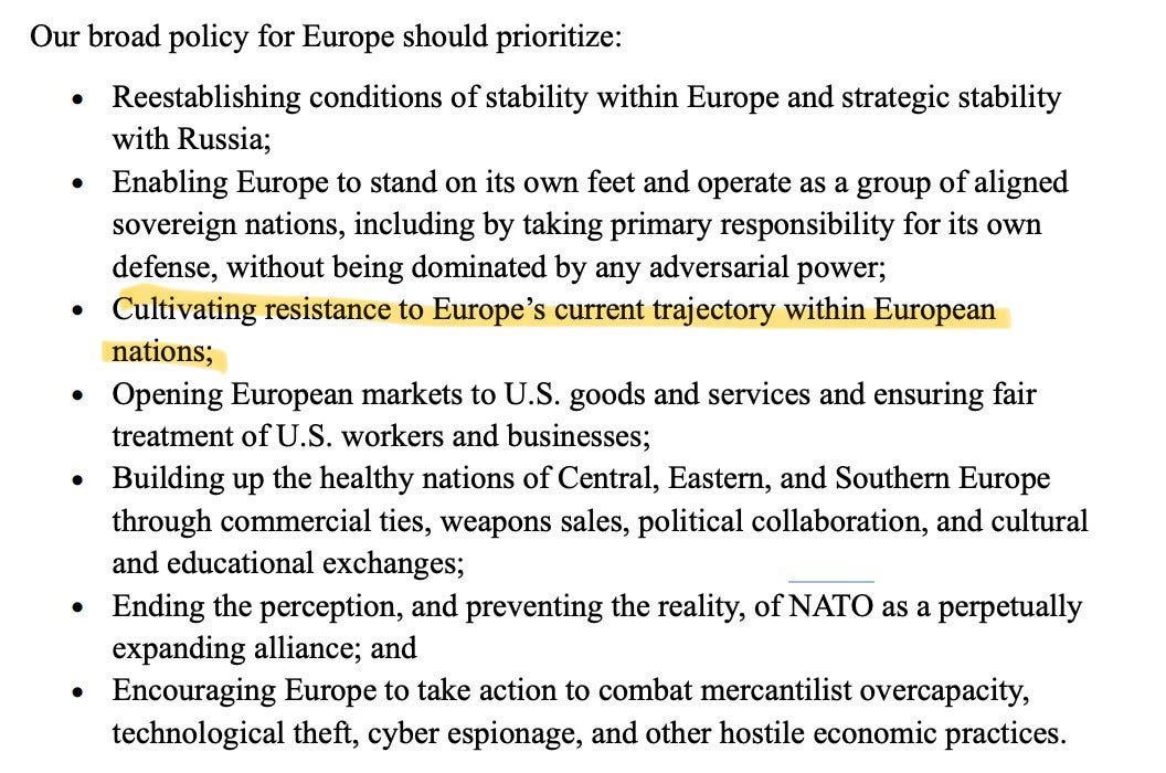 The most important part of what the NSS has to say about Europe is that the US national security state will act against Europe’s ruling political parties in support of far-right movements and parties: