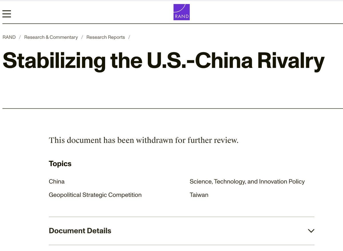 A controversial, new RAND Corporation report on China-US competition just got yanked from public distribution for mysterious reasons: